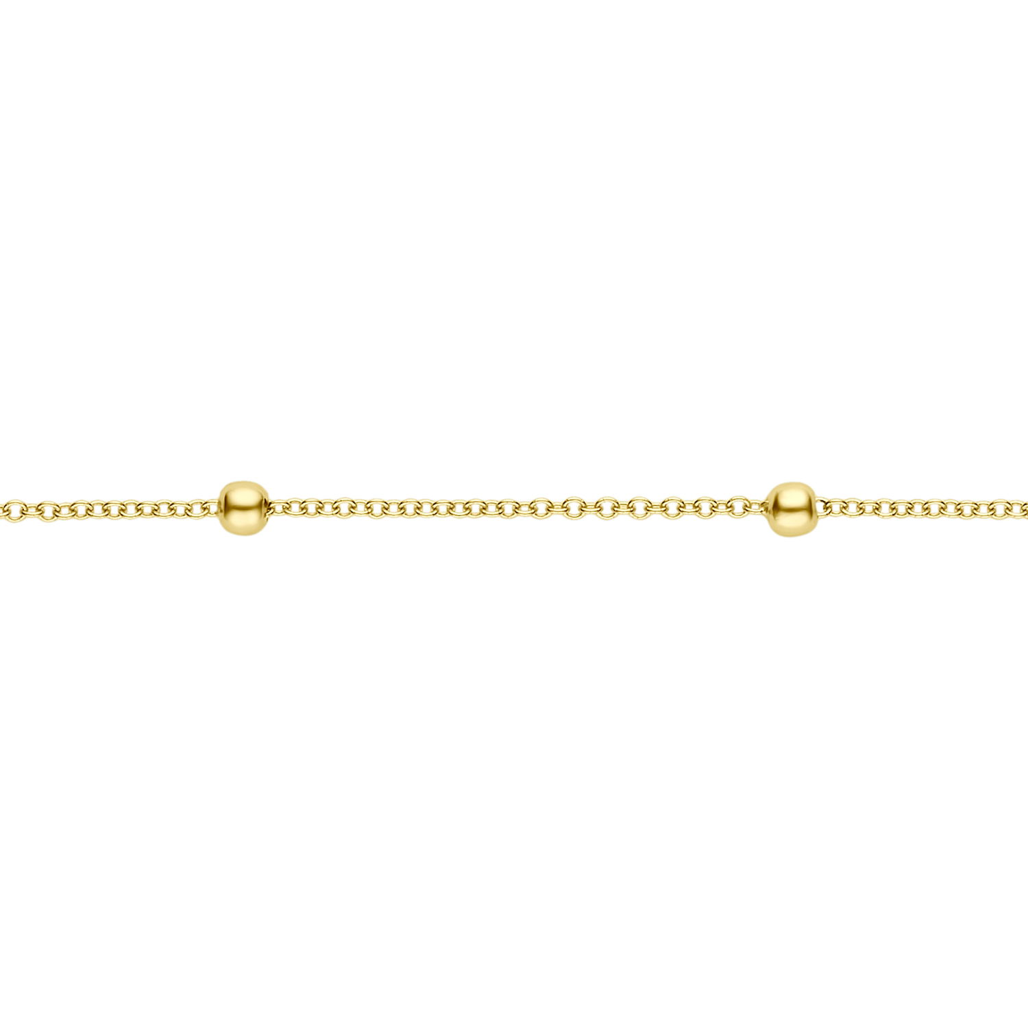 Deze elegante armband bestaat uit fijne schakeltjes met bolletjes ertussen. De armband is gemaakt van 14k geelgoud en heel goed te combineren met andere sieraden uit onze collectie.